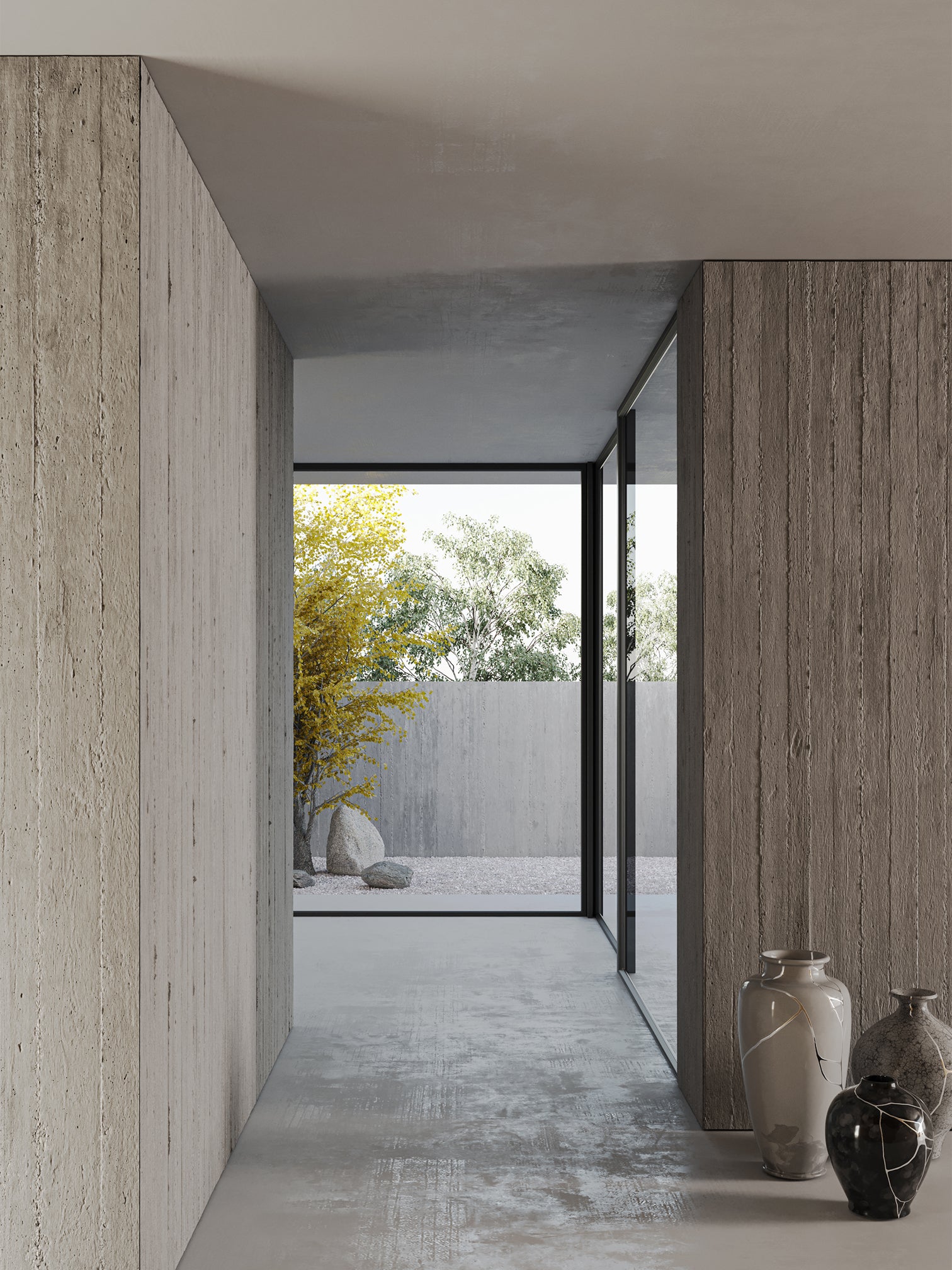 L’unione fra l’aspetto naturale ed il materiale strutturale grezzo, danno vita ad una rappresentazione visiva di assoluta eleganza.