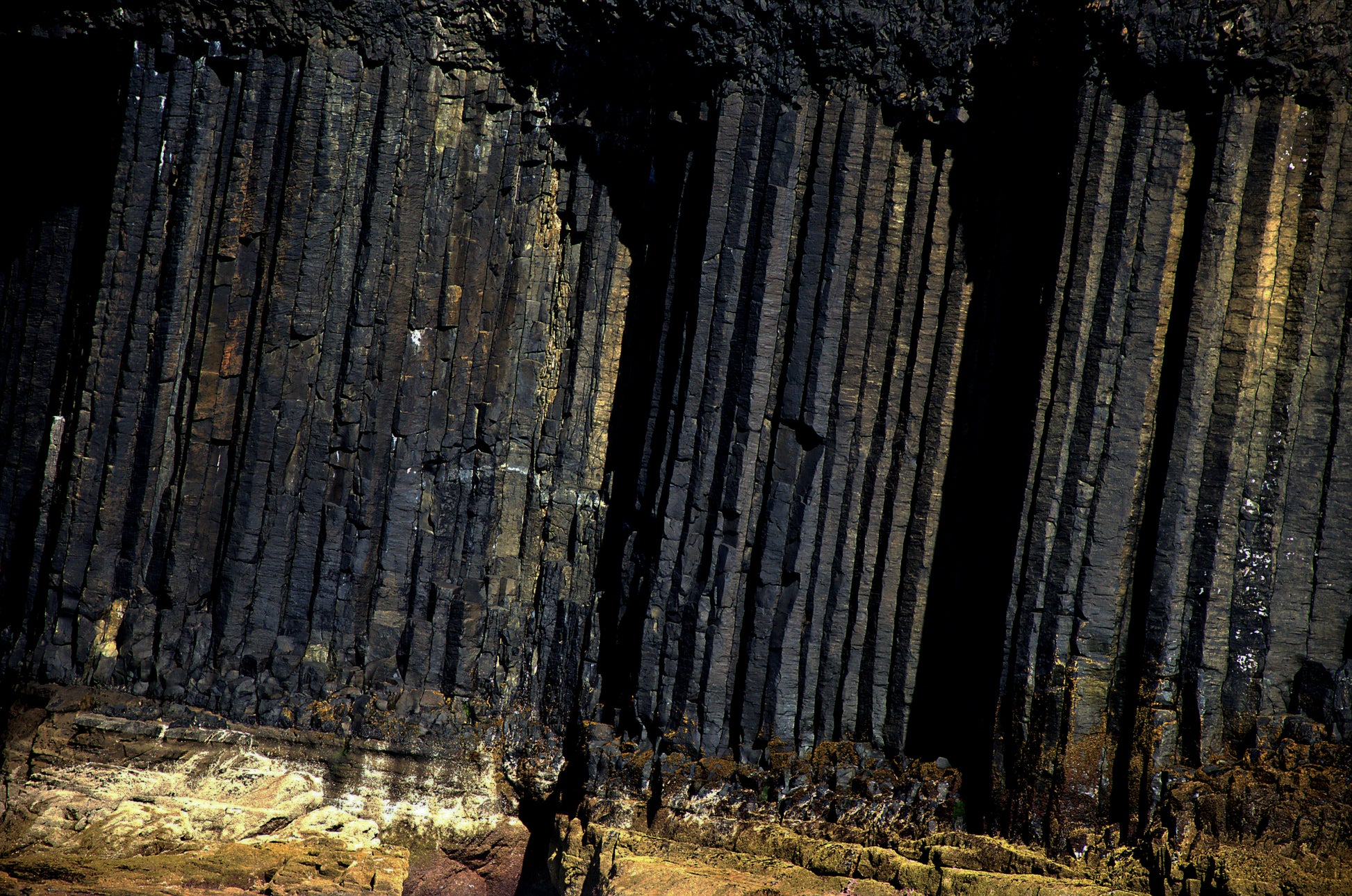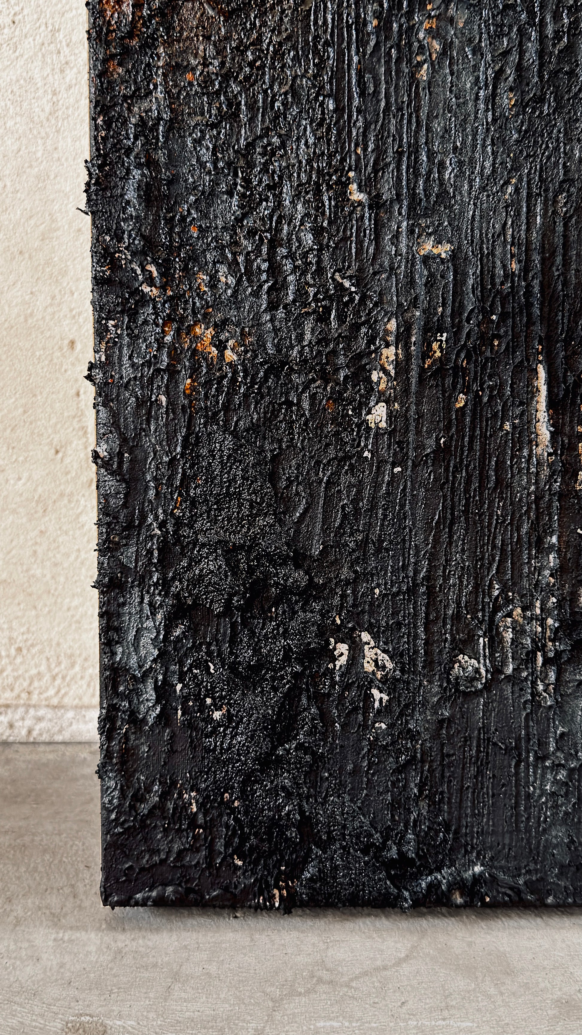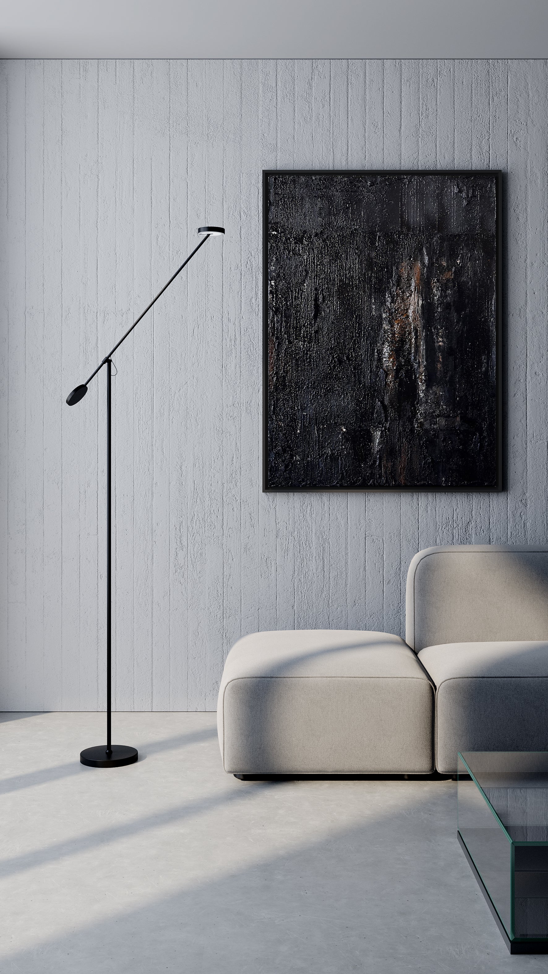 Come una scultura, il nero profondo assorbe la luce e la restituisce intensamente, evocando colonne di basalto islandesi.